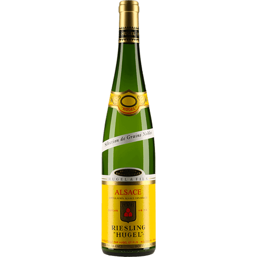 Le Riesling Hugel Sélection de Grains Nobles est une cuvée d’exception, produite uniquement dans les années les plus favorables, à partir de raisins atteints de pourriture noble et récoltés grain par grain. Ce vin rare offre une expression unique du Riesling, alliant intensité aromatique, précision et grande noblesse. Le nez révèle des notes complexes de citron confit, de fruits jaunes mûrs, de cire d’abeille, de miel et de pierre humide. En bouche, la liqueur est profonde et raffinée, avec une acidité vive qui équilibre parfaitement la richesse naturelle et prolonge la finale avec énergie et élégance. C’est un grand vin de garde et de gastronomie, idéal avec le foie gras, les plats sucrés-salés ou les desserts aux agrumes, mais aussi remarquable en dégustation pure.